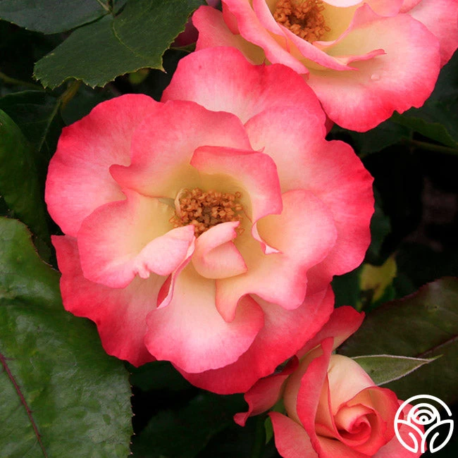 GOLD MEDAL WINNER! The large, eye-catching, semi-double blooms of Birthday Girl are a beautiful blend of creamy-white and cherry red with a ruffled appearance. This Shrub rose grows in an attractive, mounded shape, wider than it is tall and her wonderful flowers are set off by a background of rich, deep-green, leathery foliage. This continuously blooming rose is also very disease resistant. Birthday Girl has earned many Gold Medals including: Gold Medal at Bagatelle, Gold Medal at Monza, Gold Medal at Rome, Gold Medal at Saverne, Gold Medal at Baden-Baden. She is simply outstanding!