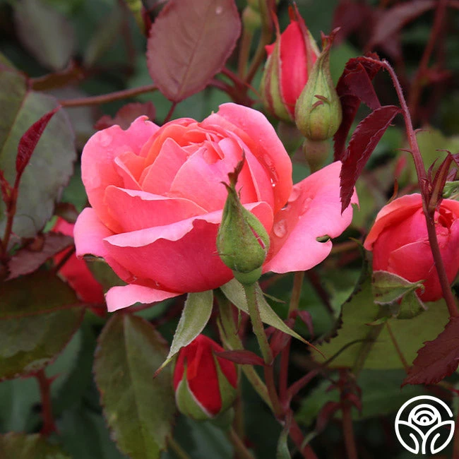 Start the party in the garden with Carefree Celebration. Her orange to orange-red and peach, double cupped, 2 ½” blooms are set against medium green, matte foliage. Sometimes showing as coral, her flowers are gently fragrant and she is hardy down to zone 4!