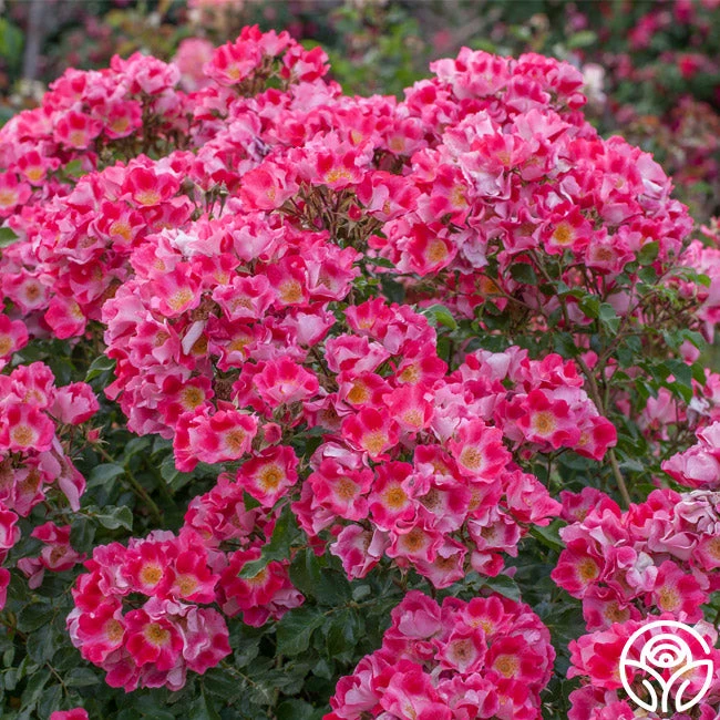 This mounding Shrub is very similar to Carefree Delight as it comes from the same breeding line but has better disease resistance, better growth habit, and improved bloom power. Carefree Spirit’s bright, non-fading, cherry red 2 ½” blossoms have a white eye and are produced in showy clusters in flushes during the blooming season. She is a 2009 AARS Winner and was selected as a Plant of Distinction in the 2014 UGA trials.