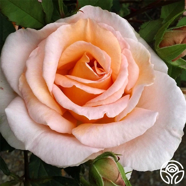 Desirée blooms in absolute abundance. Her classically formed 4” blooms have 20+ petals and are borne in clusters of rich, peach with highlights at the centers. Her blossoms shade to a delicate peach-pink toward the outer edges of the petals. Desirée exudes a strong, irresistible fragrance of fruity myrrh. She is a compact, very bushy plant with mid-green leaves with red, serrated edges.