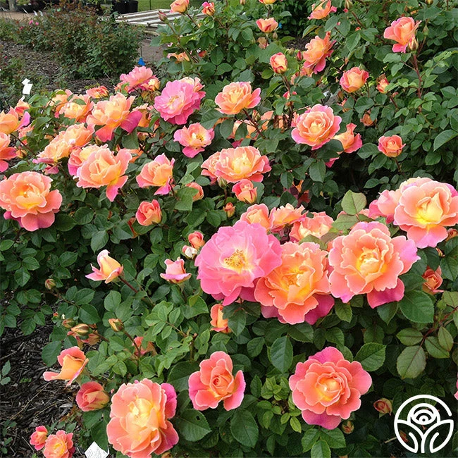 Fruity Petals is a tall Climber with uniquely shaped blooms of coral and yellow coloring, almost as bright as the childhood cereal you remember! Her ruffled petals are ombre colored with edges dipped in intense coral, fading to apricot, and culminating in a bright yellow center. Expect Fruity Petals to explode with blooms early in the spring and continue to bloom profusely through the entire season. She is very disease resistant and does especially well when given a trellis or arbor to support her as she climbs.