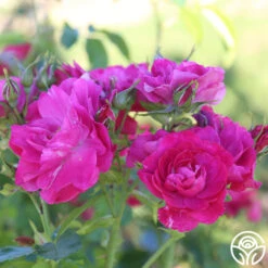 The first climbing rose of the Explorer series, the vigorous growth makes it ideal for use as a climber. Its fragrant blooms appear in great abundance early in summer and continue until frost in a gamut of shades from orchid-pink to fuchsia-red, all complemented by lustrous soft green foliage. The lovely flowers are followed by attractive hips of orange. This is a wonderful, repeat blooming fully double rose, petal count is 40.