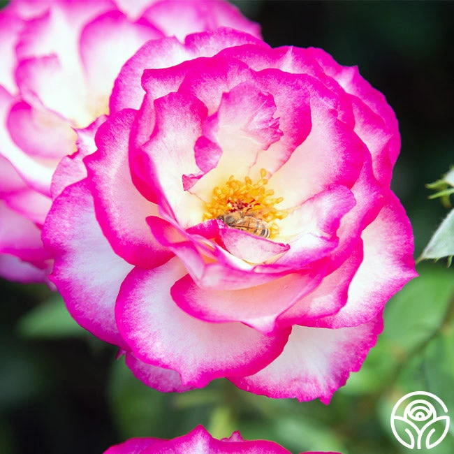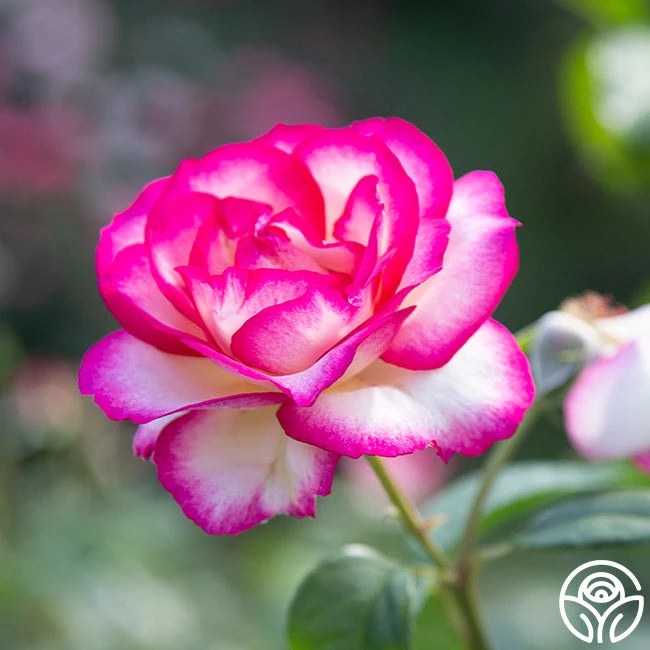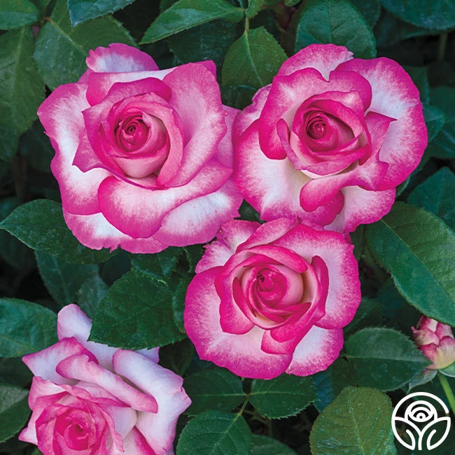 Born in flushes throughout the season, this crown-worthy beauty is definitely one of the most charismatic roses in the garden. Photo-ready blossoms of pure white are kissed with vivid pink at the edges and feature large, glossy leaves and a moderate fragrance. It’s no wonder she’s a garden star!
