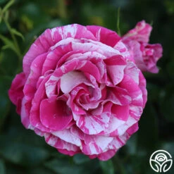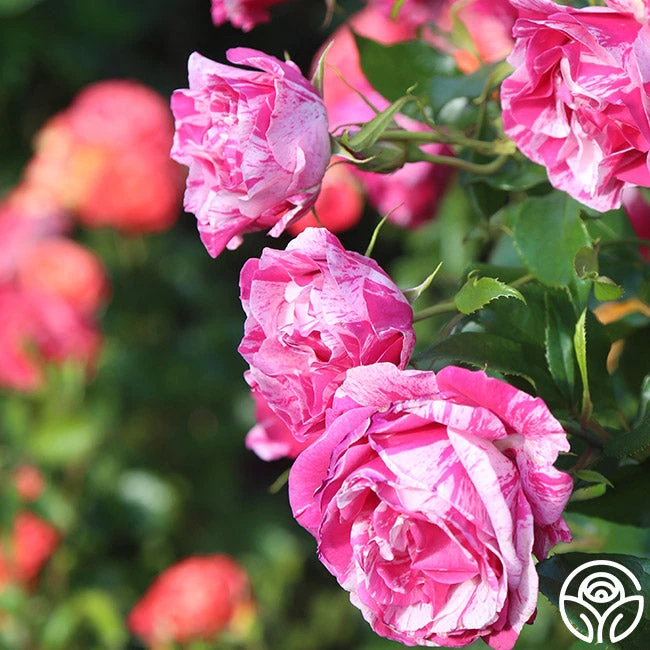 Parade Day offers all of the childhood excitement of a local parade with large blooms of an intense, eye-catching pink splashed and speckled with white. This rose is reminiscent of streamers and sparklers at a small-town parade. She produces incredibly prolific blooms in clusters with excellent color retention and a strong, citrusy fragrance with a hint of spice. Her large, glossy green leaves shine as the backdrop for her 4-5” blooms. This rose makes the grade and is a truly spectacular rose. We love her in the cutting garden and performs well in pots on patios or balconies too! What’s not to love?