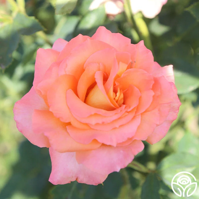 An elegant Hybrid Tea rose with a bright, sparkling, rich apricot-orange color, Seventh Heaven has an intense fragrance and stays compact enough to be grown in pots. If planting in a garden bed, she shines best at the front of the bed where she won’t be shaded out by taller bushes. Seventh Heaven flowers in profusion on a vigorous growing bush with glossy, dark green foliage. A great rose in all weather with good disease resistance.