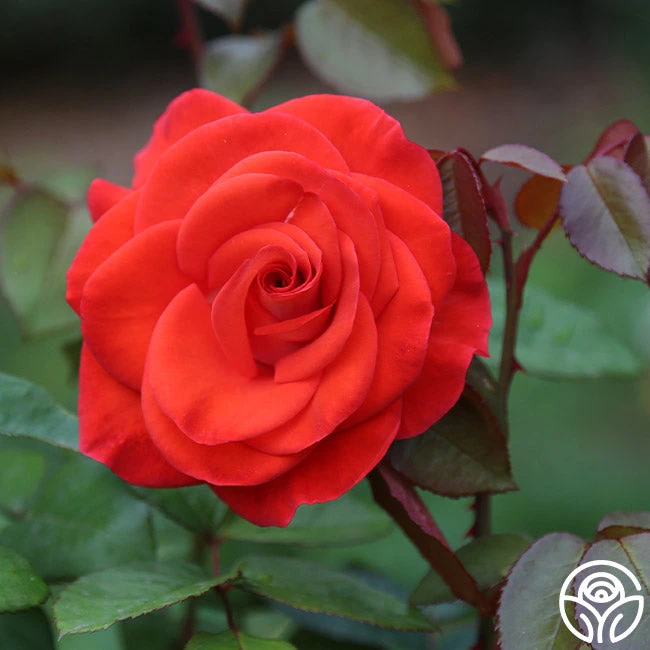 From hybridizer, Christian Bedard, Smokin’ Hot delights with her fiery-red blooms and glossy, burgundy foliage which matures to a deep, lustrous green with hints of red burning at the edges. She produces single blooms on long stems with deep, smooth red coloring singed by smoky overtones. Smokin’ Hot makes an excellent cut rose and is sure to get all the attention!