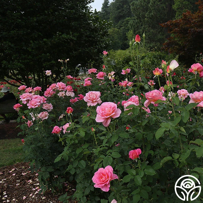 Named for the American artisan family, this tall, vigorous Hybrid Tea produces very fragrant, large, high-centered, classic blooms of pink and yellow blend. Tiffany has dark green, healthy foliage to accentuate her perfect, 4” blooms. She has a strong, lemon scented fragrance and shows off her colors best in the heat. A definite jewel of the garden!
