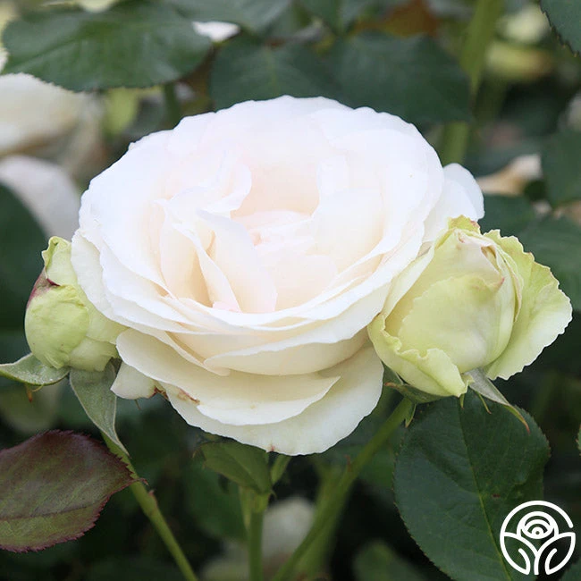 A sport of Eden, White Eden has the same very full, old-fashioned, globe-shaped blossoms, but in a soft shade of pristine white that takes on a pinkish blush in cool weather. She blooms in flushes throughout the season producing large solitary blossoms of upwards of 100+ petals. She will spread well, so give her ample space to grow.